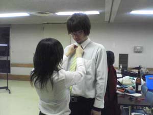 ネクタイが結べない星さん 本番までに練習してくださいね。