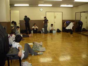 みんなで出ハケのチェックをします。 ここで聞き逃すと大変! みんな真剣。 |