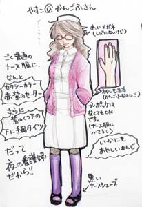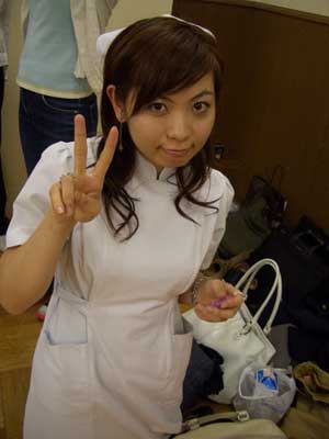 松の衣装はナース服に網タイツという、かなりドキュンな着こなし。 |