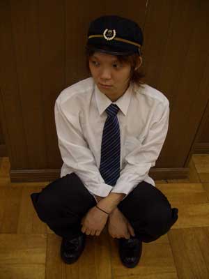 「当パン用の写真撮らしてー」と言ったら、 ものすごく入念に帽子をかぶってました。 ヤスです。 すばらしい役者精神です! |